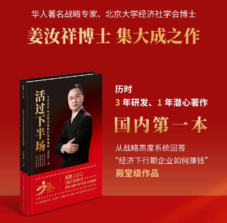 神州英才集團(tuán)總裁、首席顧問、武漢大學(xué)博士-姜桐博士傾情分享推薦,他表示:“姜汝祥博士在書中從戰(zhàn)略高度清晰回答了‘經(jīng)濟(jì)下行期企業(yè)如何賺錢’,這是我認(rèn)為到目前為止國(guó)內(nèi)第一本也是唯一一本經(jīng)濟(jì)下行期的戰(zhàn)略專著。”